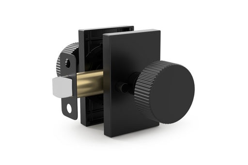 Ebony Modern Knob can be ordered with any Brass rosette.  Sold as complete set. Includes Latch and Strike Plate.  28 Degree Latch is also availabl...