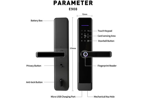 LUXOriginal price $295.00 - Original price $295.00Original price$295.00$295.00 - $295.00Current price $295.00| /Specifications Lever Fingerprint Lock Aluminum Alloy material with electrophoretic treatment Black Baking or Satin Nickel treatment optional Supp...